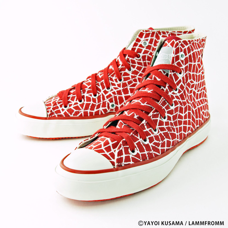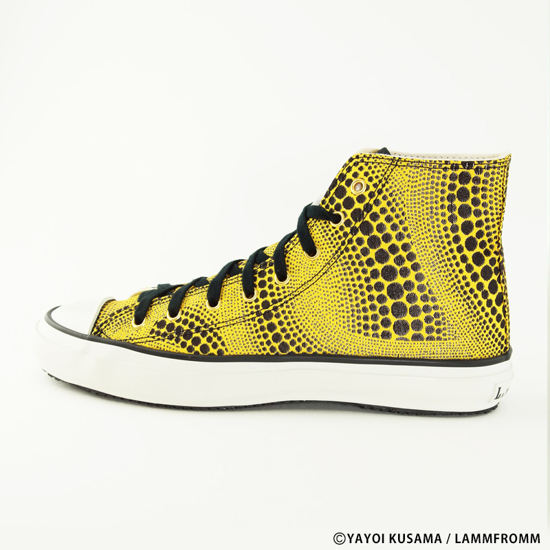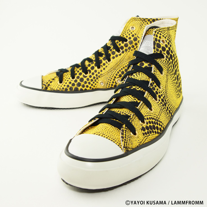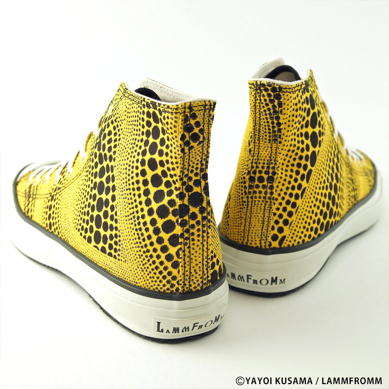 現代美術家の草間彌生や奈良美智など、現代アーティストとのコラボレーショングッズを製作販売する 「LAMMFROMM(ラムフロム)」は、草間彌生の代表的作品「黄樹(YELLOW TREES)」と「インフィニティ・ネット(INFINITY NETS)」をモチーフにしたオリジナルスニーカー、「草間彌生 スニーカー 黄樹 HI」と「草間彌生 スニーカー インフィニティ・ネット HI」の2種を、2018年11月23日より、ラムフロム HINKA RINKA 銀座店(東急プラザ銀座3F)並びにラムフロム・オンラインストア(https://store.lammfromm.jp)にて先行発売いたします。
