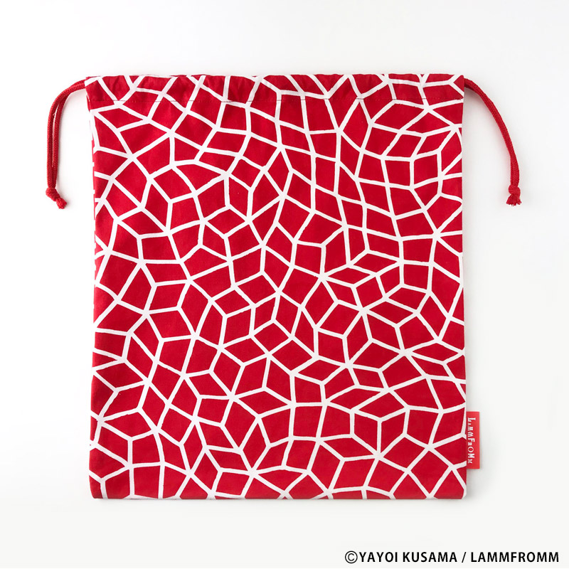 デザインタイプは、イエローxブラックの「草間彌生 スニーカー 黄樹 HI」と、レッドxホワイトの「草間彌生 スニーカー インフィニティ・ネット HI」の2種類です。各スニーカーには、スニーカーと同柄のシューズバッグ(巾着袋)と替えの靴紐が付属します。