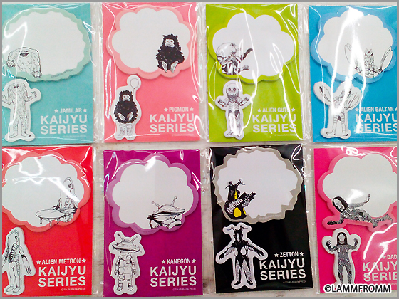 お次はこちら。仕事で残すメモに怪獣がいれば、疲れが一気に和らぐかもしれないですよ☆ フキダシから覗いていたり、フキダシと一体化していたりと、かなり面白いことになっている怪獣たちの「スティッキーメモ」シリーズです。外国のお客様にもとても人気があるアイテムです♪