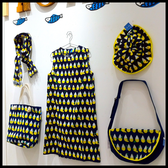 今回の「青衣フェア@ラムフロム ShinQs店」では、先にスタートしていた「青衣フェア@ラムフロム ラシック福岡天神店」と同じく、2015年の新柄と新アイテムがメインのフェアを展開しております。本日はその中から、既に福岡店フェアのご紹介で登場しました新柄「お魚ぎっしり柄」シリーズとは別の新柄をご紹介します♪ 決して狙ったわけではないのですが、関東では昨日梅雨入りが宣言され、まさにタイムリーな紹介となりました↑写真の柄でございます。白とレモン色の可愛らしい水玉(水滴)模様・・と思いきや、この柄、実は水玉ではないのです。なんとこちらの柄、「キツネの尻尾(しっぽ)」柄なのです☆