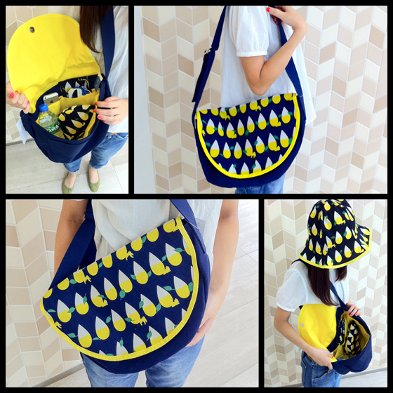 こちらは今回新登場したアイテムの一つ「半月ショルダーバッグ」とチューリップハットのコーデです☆ このショルダーバッグ、かなり収納力がありそうですよ♪