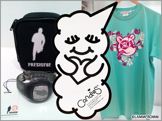 FRESH JIVE WATCH(70%OFF:希望小売価格15,000円 → 4,500円/ Candies iPhone 5/5s ケース(希望小売価格から50% OFF)/森ヒカリTシャツシリーズ(50%OFF:3,800円→ 1900円)※全て税別
