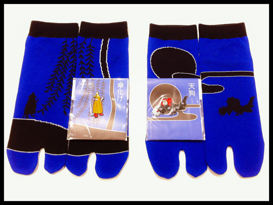 ワッペンと天狗ワッペンをセットで如何でしょうか♪ こちらは人気の足袋ソックスです。写真左が「柳」右側が「月」のタイプで、「柳」ソックスには「傘化け」のシルエットが、「月」ソックスには「天狗」のシルエットが浮かんでおります☆