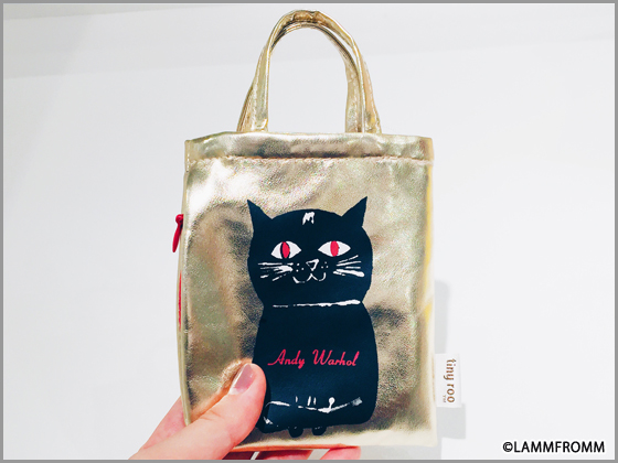 お次はこちら♪ 生まれたての子猫のように小さい、アンディ・ウォーホルのにゃんこをモチーフにしたタイニーバッグの「Cat」タイプですニャ。「Cat」バッグはサイドにファスナー付きポケットがあって、電子マネーカード等の収納にも便利ニャす☆