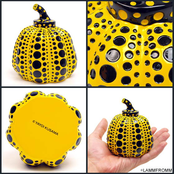 さて、まずはこちらから♪ 夏の終わりに草間彌生スタジオから満を持して登場しました、「草間彌生 パンプキン オブジェ」です☆ 作品同様、細部まで作りこまれた手のひらサイズのオブジェは、存在感たっぷりのインテリアとして、ペーパーウェイトとして、ご自宅でお楽しみ頂けます。ハロウィンシーズン真っ只中なこの季節、これぞアートなハロウィンアイテムとして、是非お部屋に飾って戴きたい草間彌生のアートグッズです♪