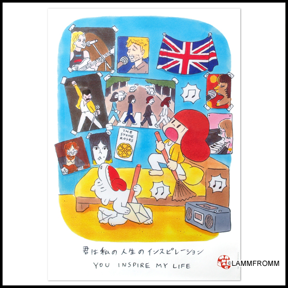 お次はこちら、ブリティッシュロックなマムアンちゃんとマナオのポスターです♪ ビートルズにフレディ・マーキュリーなどなど、ブリティッシュロック&ポップスファンの皆さんにもオススメの、ロックテイストのマムアンちゃんポスターです。フレディ・マーキュリーコスプレのマムアンちゃんはほうきを持ち、マナオはちりとりを持って一緒に熱唱している曲は、おそらく(いえ、間違いなく)「We Are the Champions」と思われます。
