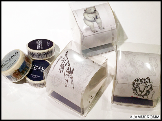 サシェの他にも三沢さんの新グッズが複数登場しました! こちらは、「ANIMALS マスキングテープ」シリーズと「ANIMALS ロールメモ」シリーズです☆ マスキングテープのデザインタイプは、モノクロの「ネコ」と「動物行進」のタイプがございます。