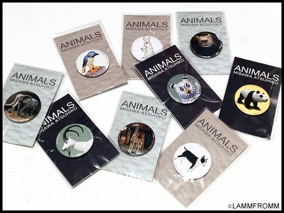 最後は「ANIMALS 缶バッジ」シリーズです☆ 「ドローイング」がモチーフのタイプと「木彫作品」がモチーフのタイプがございます♪